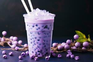 Try this taro milk tea for a vibrant purple boba featuring jasmine tea, taro root, milk, and tapioca pearls. Each sip is sweet, creamy, and full of unique and exciting flavors.